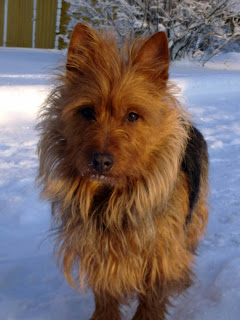 Otapa nyt se kuva niin pääsen takaisin tuvan lämpöön! tuumi Donna kun auringonpaisteesta huolimatta mittari näytti miinus kahtakymmentä. Vuosi on muuten ollut aika lailla plussaa, kera auringonpaisteen; yritystoiminnan aloittaminen on minimoinut näyttelykerrat, mutta tulokset ovat olleet huikeat. Cacib'eja, uusia valioita, rop-kasvattajaluokkia. Näin jouluisina välipäivinä on näitä mahtavia näyttelytuloksia ollut kiva muistella, mutta toisaalta vähän harmitella, että milloinkohan saisi päivitettyä kesän ja syksyn kavalkaadin tänne asti?! Noh, nyt nautitaan harvoista vapaista päivistä ja sulatellaan niin kinkkua kuin suklaata (koirat eivät jälkimmäistä) ja todetaan että eipä tänään(kään) ;-)
